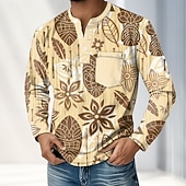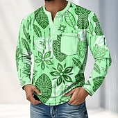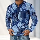 More information about Men's 3D Print Plants Henley Shirt T shirt Tee Long Sleeve Retro Vintage Casual Casual Spring Fall All Seasons Blue Green khaki Henley Henley T-Shirt
