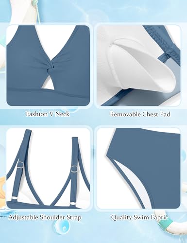 • 🌊【Unique Design】This bathing suit for girls tankini set features with chic Vneck twist front, ruched design for tummy control and slim fit, bright and charming colors with tropical print bottoms, perfect to enjoy summer time. Straps and removable paddings can be adjusted according to your teen girl's body shape and preferences