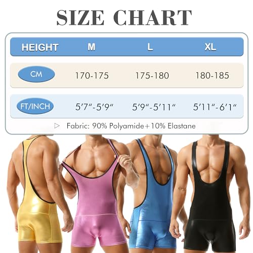 • Wrestling Singlet: This men's metallic bodysuit design with 6 kinds of colors, perfect for stage wear or club party wear