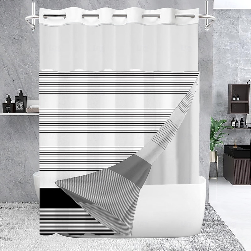 $60.99 - No Hook Geometry Striped Shower Curtain With Snap-in Fabric Liner Sheer Top Window Waterproof Double Layer Bathtub curtain 2025. Shop for cheap Shower Curtains online? Buy at lightinthebox.com on sale today!