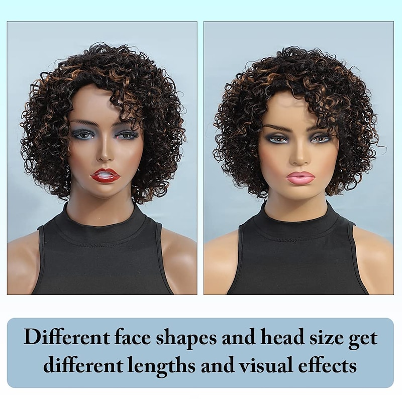 More information about Ombre Short Curly Wigs For Black Women Short Curly Wigs Highlighted Piano Color Side Part Wigs For Older Women