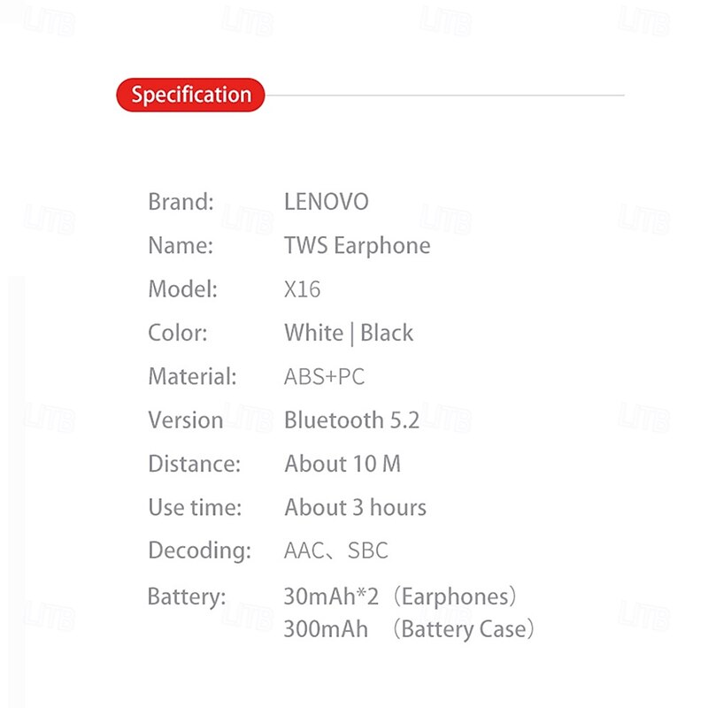More information about Lenovo X16 True Wireless Headphones TWS Earbuds In Ear Bluetooth 5.2 Stereo ENC Environmental Noise Cancellation Long Battery Life for Apple Samsung Huawei Xiaomi MI Traveling Outdoor Jogging Mobile