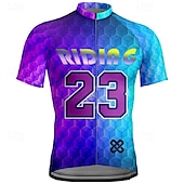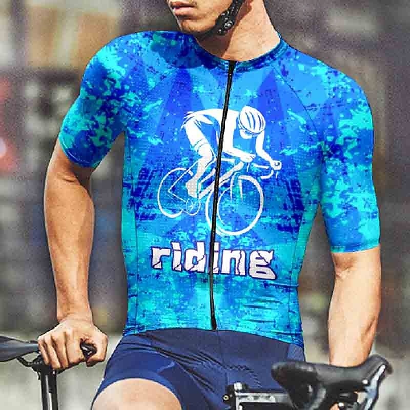 Men's Cycling Jersey Geometric Letter & Number Short Sleeve Bike Tee Tshirt Jersey with 3 Rear Pockets Mountain Bike MTB Quick Dry Anatomic Design Wicking Breathable Sports Dark Purple Blue Sky Blue 21