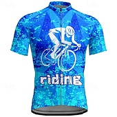 Men's Cycling Jersey Geometric Letter & Number Short Sleeve Bike Tee Tshirt Jersey with 3 Rear Pockets Mountain Bike MTB Quick Dry Anatomic Design Wicking Breathable Sports Dark Purple Blue Sky Blue 17