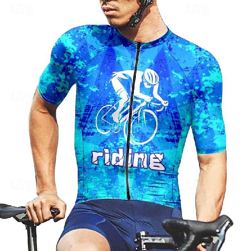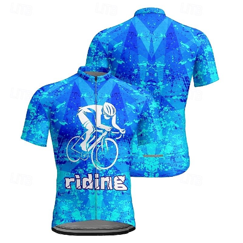 HOT ! Men's Cycling Jersey Geometric Letter & Number Short Sleeve Bike Tee Tshirt Jersey with 3 Rear Pockets Mountain Bike MTB Quick Dry Anatomic Design Wicking Breathable Sports Dark Purple Blue Sky Blue