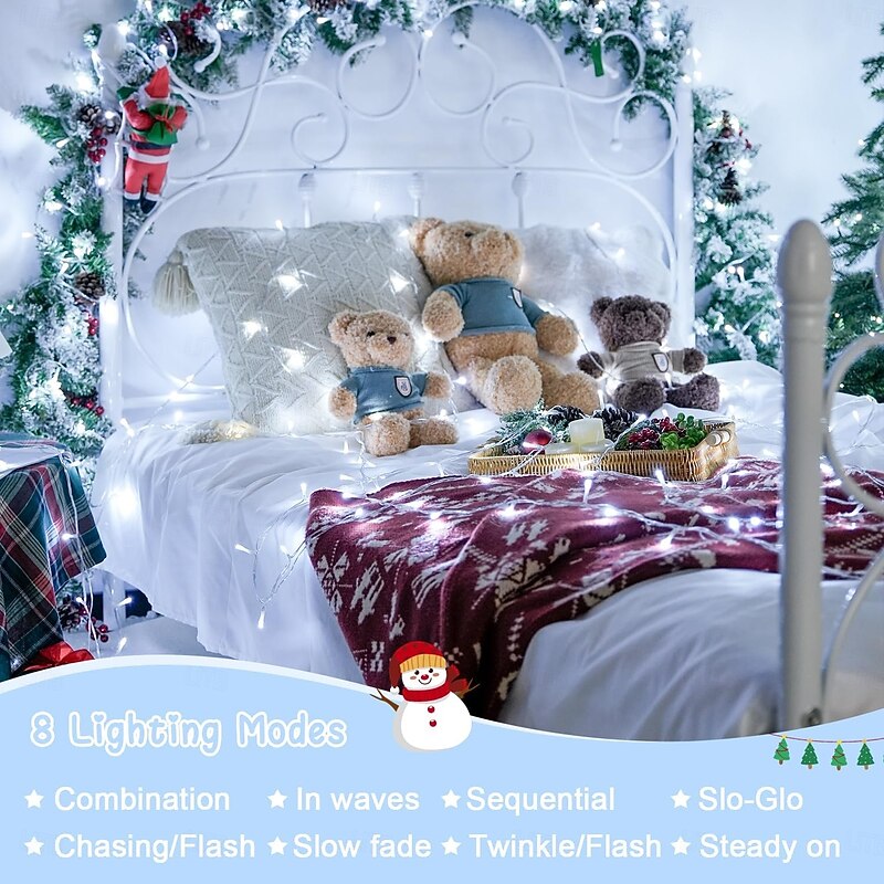 LED String Lights with 13-Key Remote Control, Warm/Cold White & Purple 50m-100m 400-800 LEDs String for Christmas Holiday Party Lights Decoration 8