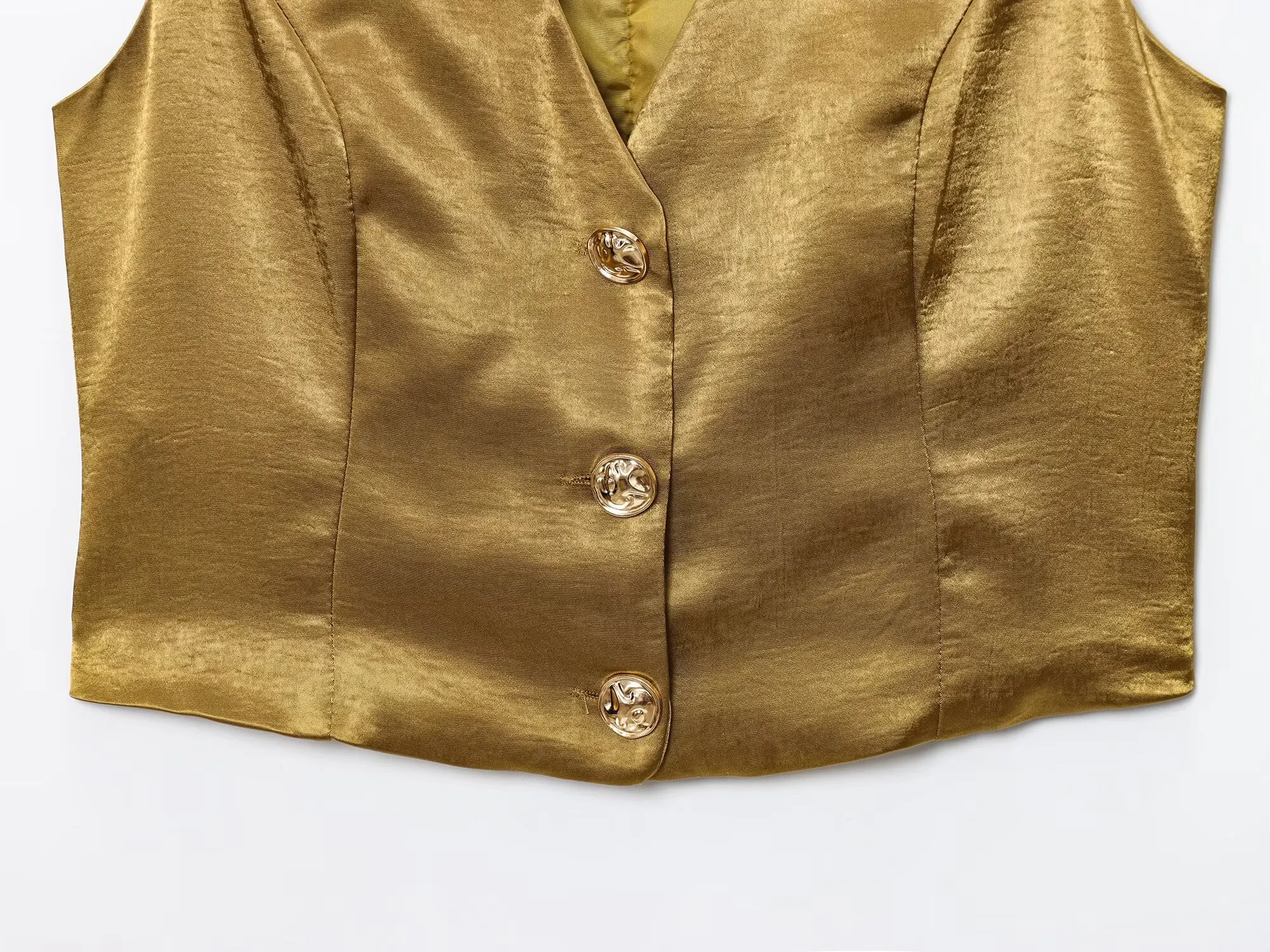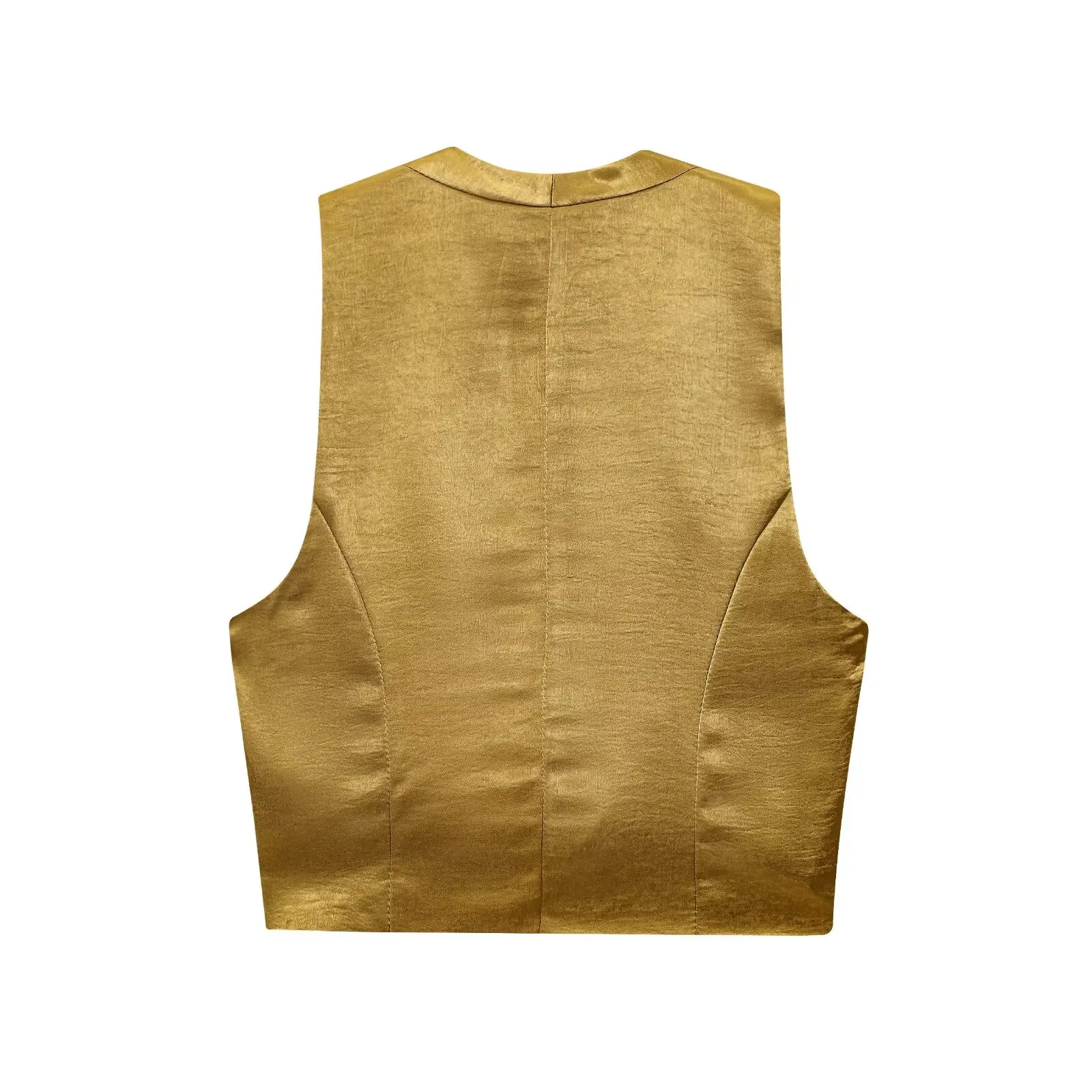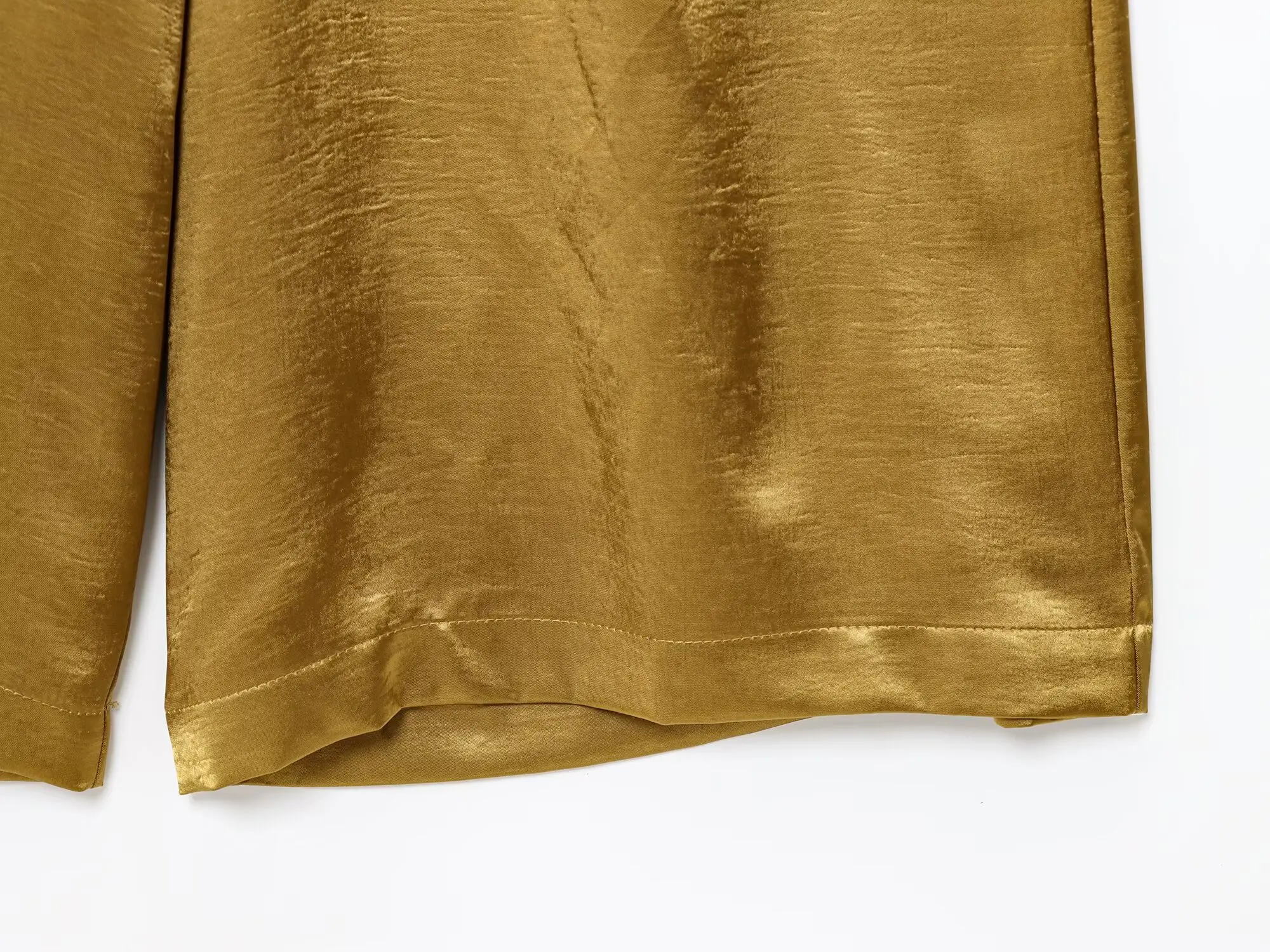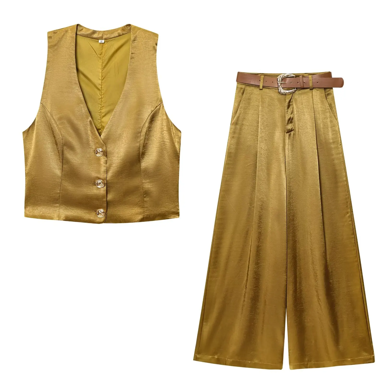 TRAFZA Woman 2025 Pants Sets Gold Button Satin Top+Wide-Leg Trousers 2 Pieces Set Summer Women's Suit Elegant New Sexy Outfits
