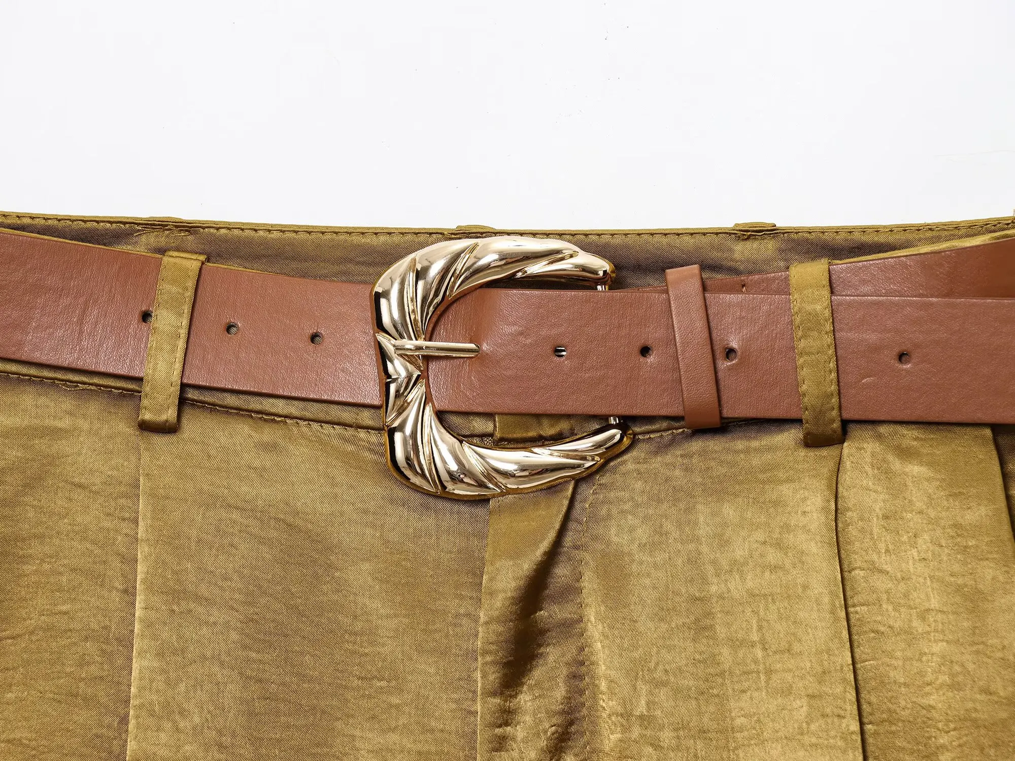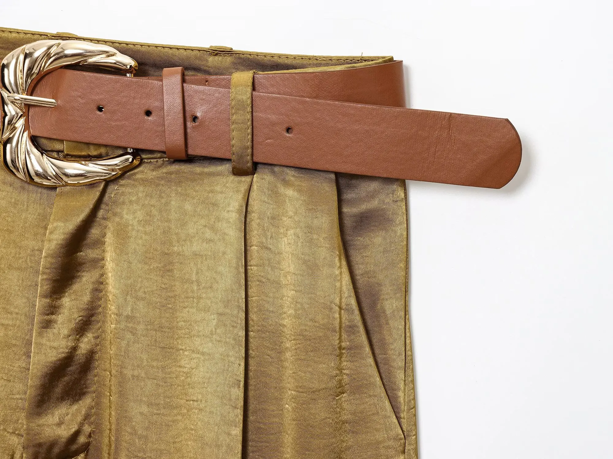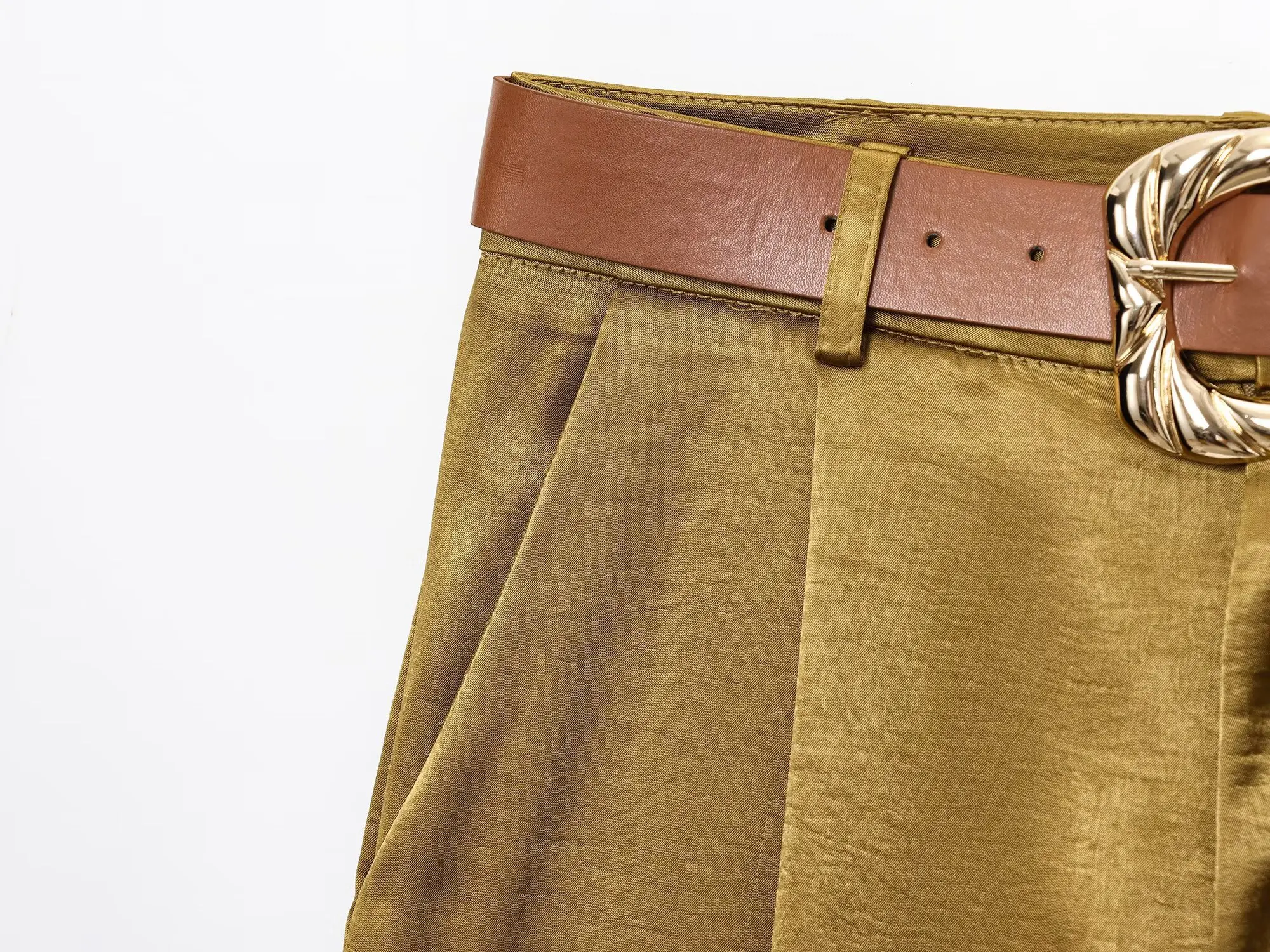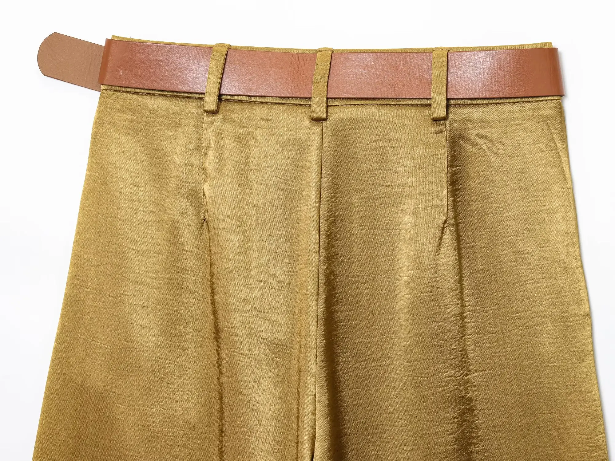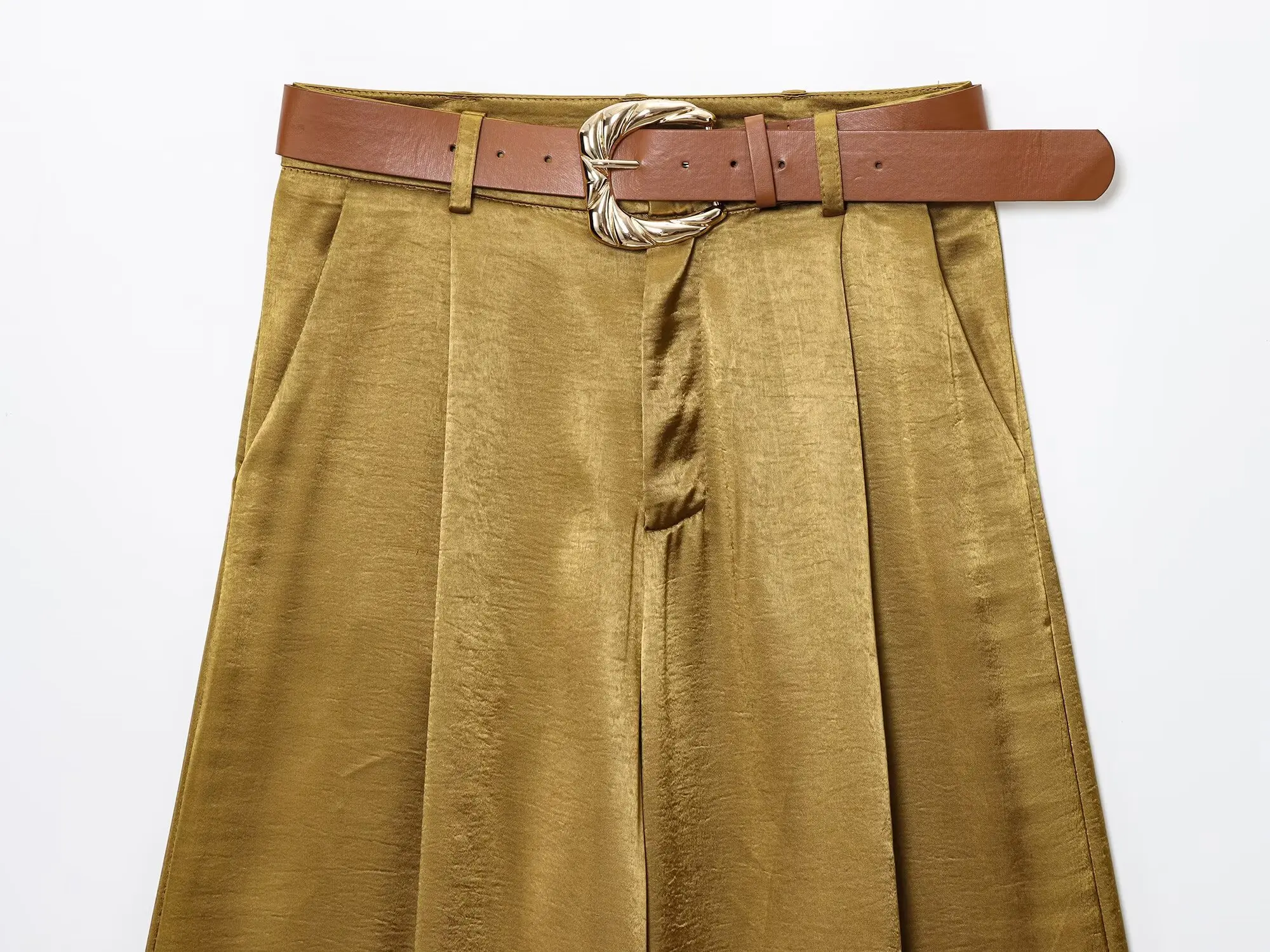 TRAFZA Woman 2025 Pants Sets Gold Button Satin Top+Wide-Leg Trousers 2 Pieces Set Summer Women's Suit Elegant New Sexy Outfits