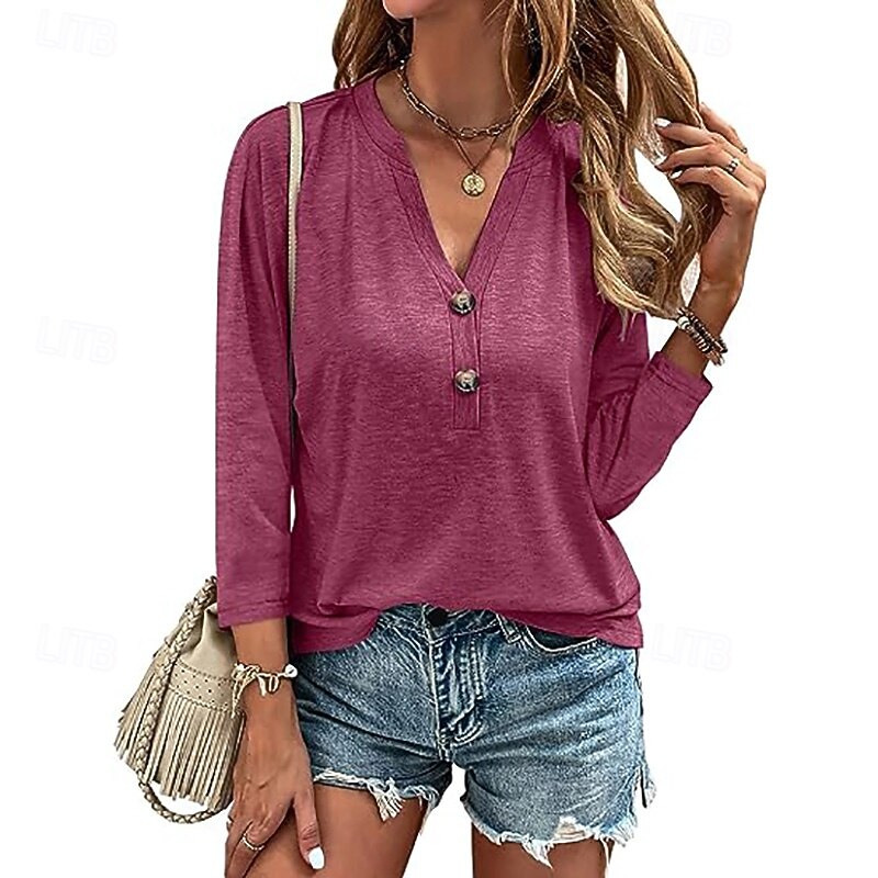 More information about Women's Blouse Solid Color Vintage Daily Casual 3/4 Length Sleeve V Neck Regular Tops Work Daily Club Uniforms Buttons claret Black Pink Blue Summer Spring Fall Winter