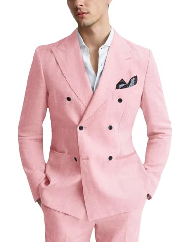 More information about Men's Linen Suit 2 Piece Double Breasted Suits for Men Slim Fit Tuxedos Suits Set for Wedding Prom