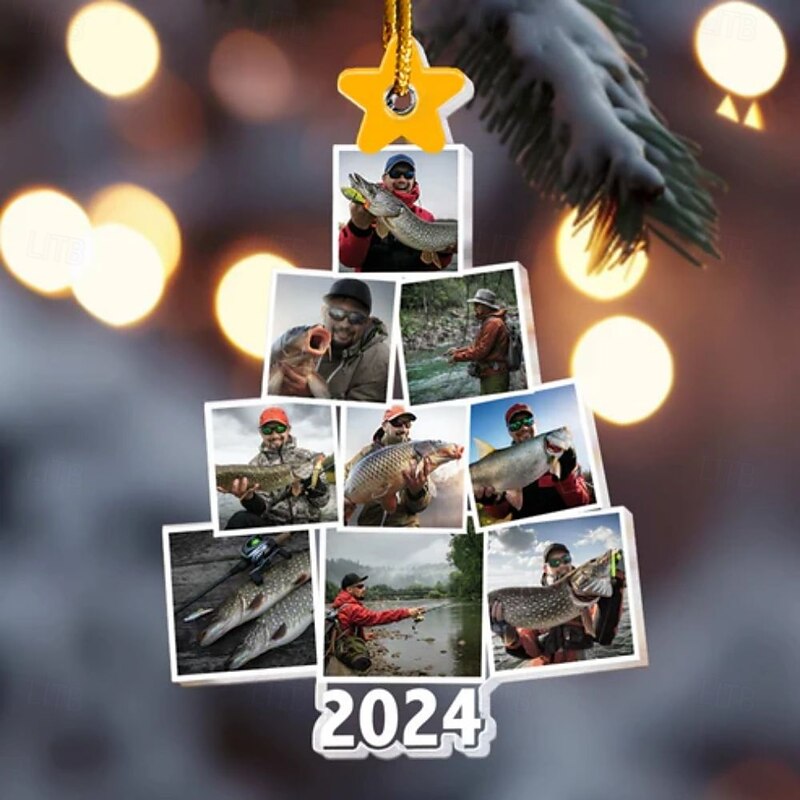 Personalized Christmas Tree Fishing Photo Ornaments Acrylic 2D Custom Picture Frame Decor Christmas Tree Xmas Decoration Hanging Pendant Gifts for Family and Friends 1