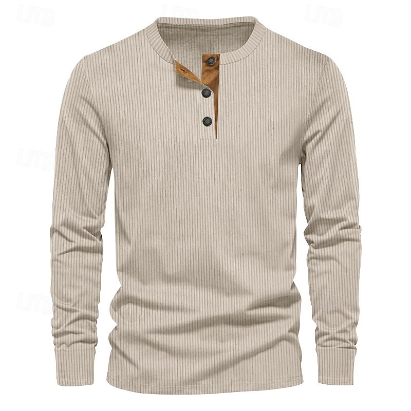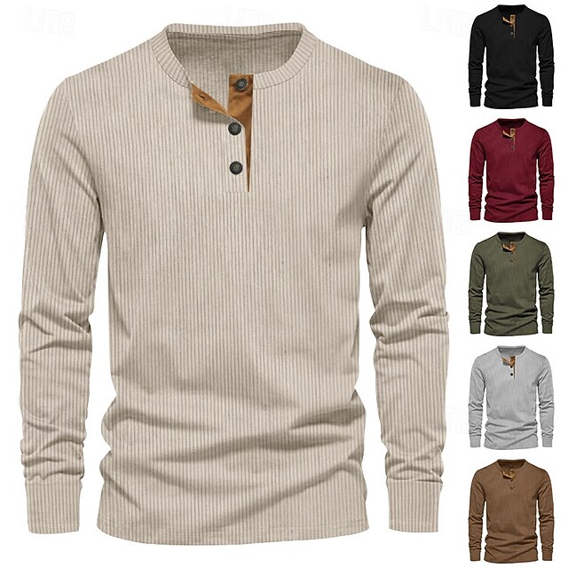 More information about Men's T Shirt Long Sleeve Fashion Daily Buttons Pocket Round Dailywear Causal Spring & Fall Wine Black Light Green Henley T-Shirt