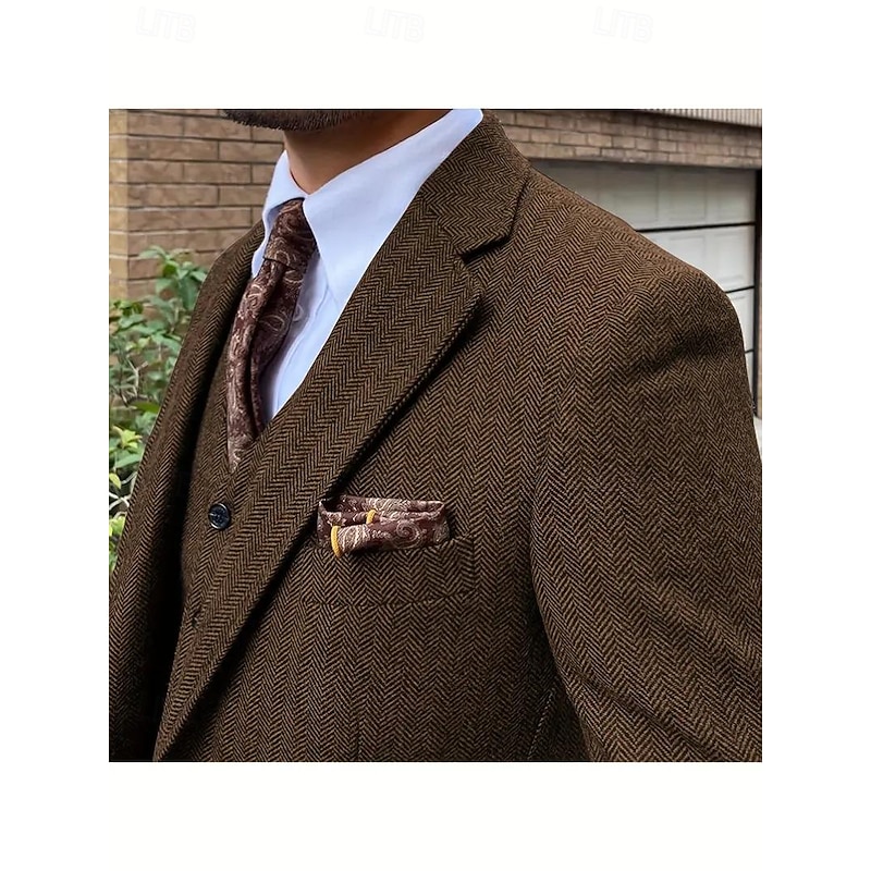 More information about Men's Business Casual Tweed Suits Notch Lapel Coffee Solid Colored Tailored Fit 3 Piece Single Breasted Three-buttons