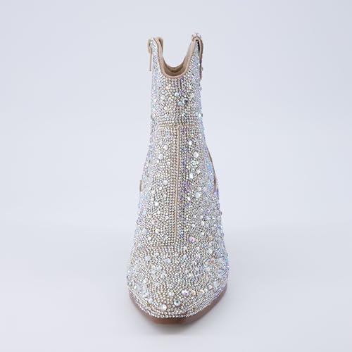 • 𝗗𝗮𝘇𝘇𝗹𝗶𝗻𝗴 𝗦𝗽𝗮𝗿𝗸𝗹𝗲 𝗗𝗲𝘀𝗶𝗴𝗻 – Fully encrusted with rhinestones cowboy boots for women to make a bold statement, perfect for parties, concerts, and celebrations.