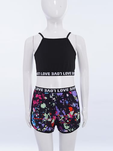 HOT ! FEESHOW Kids Girls 3 Pcs Summer Outfits Short Sleeve Graffiti Print Crop Top Cami Vest with Shorts Clothes Set Tracksuit Multicolor 10-11 Years