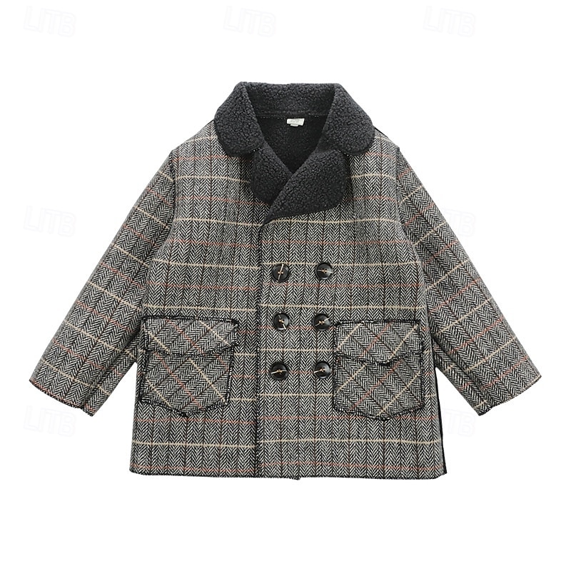 More information about Kid's Boys' Woolen Coat Outerwear Plaid Long Sleeve Patchwork Pocket Coat Outdoor Fashion Daily Brown Gray Fall Winter 7-13 Years