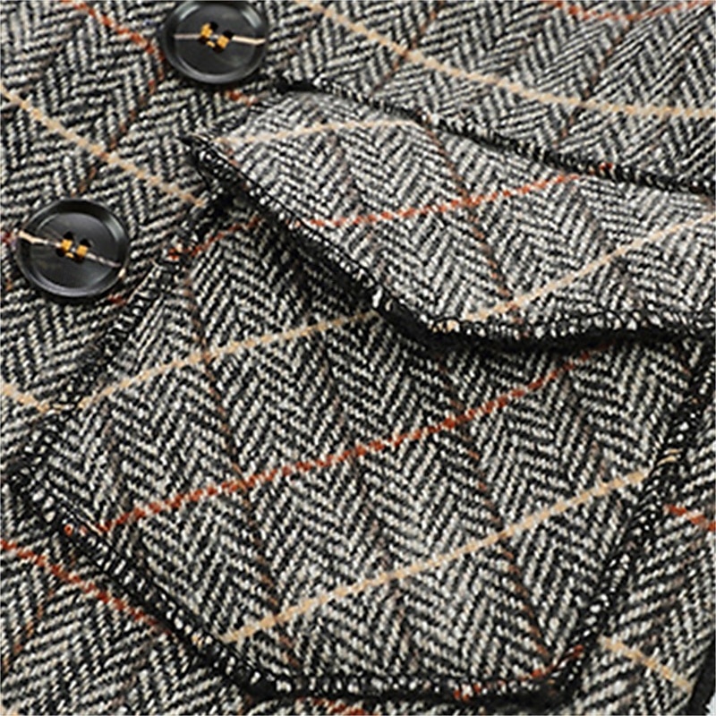 Kid's Boys' Woolen Coat Outerwear Plaid Long Sleeve Patchwork Pocket Coat Outdoor Fashion Daily Brown Gray Fall Winter 7-13 Years 3