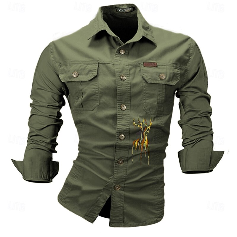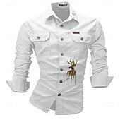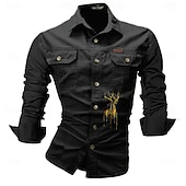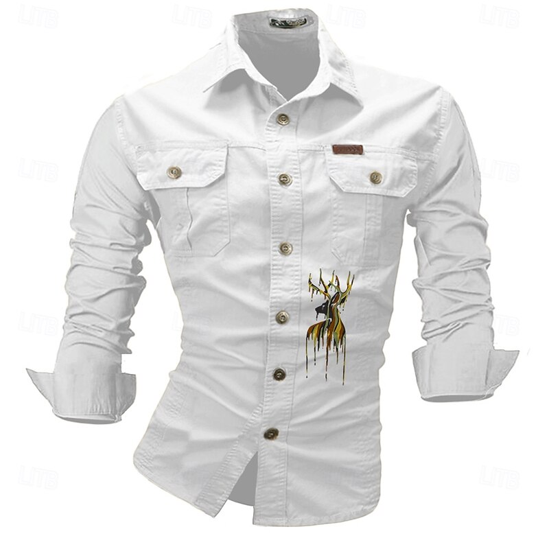 More information about Men's Deer Work Shirt Western Shirt Cargo Shirt Long Sleeve Casual Sports & Outdoor Going out Winter Spring & Fall Turndown Print Black White Army Green Red Blue