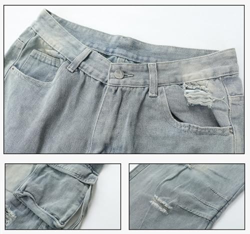 More information about Baggy Denim Cargo Pants for Men Straight Wide Leg High Waist Ripped Fashion Boyfriends Jeans with Pockets