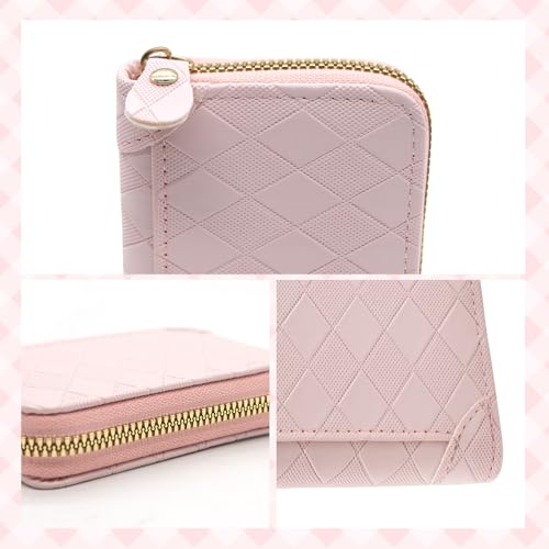 LJCZKA Credit Card Holder Wallet for Women Men Small Zipper Card Case Leather Accordion Purse Short Compact Change Pocket (Quilted Pink) 5