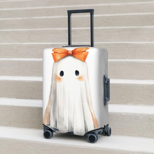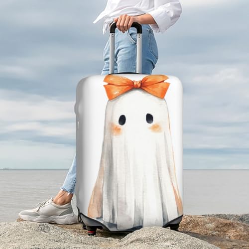 Cute Ghost With Orange Bow Elastic Travel Luggage Covers Dustproof Scratch-Resistant Suitcase Protector Fit 22-24 Inch 1