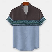 More information about Men's Geometric Indian Ethnic Shirt Button Up Shirt Stand Collar Shirt Short Sleeve Vintage Retro Vacation Dailywear Beach Wear Summer Spring Mandarin Collar 3D Print Linen Like Shirt Yellow Blue