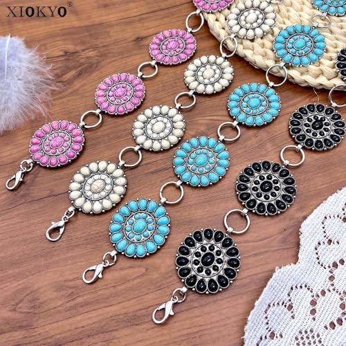 Boho Turquoise Concho Belt Silver Metal Western Turquoise Belts Waist Chain Belt for Women Dress 5