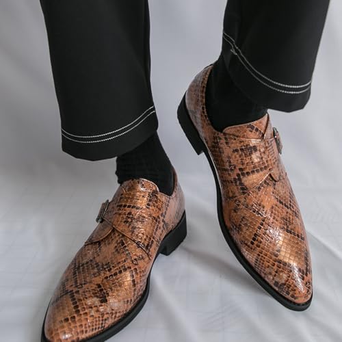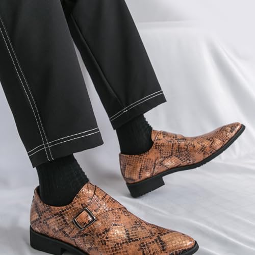 Men's Chunky - Heeled Monk Strap Loafers, Fashionable Classic Pointed - Toe Slip - on Low - top Business Formal Shoes 6
