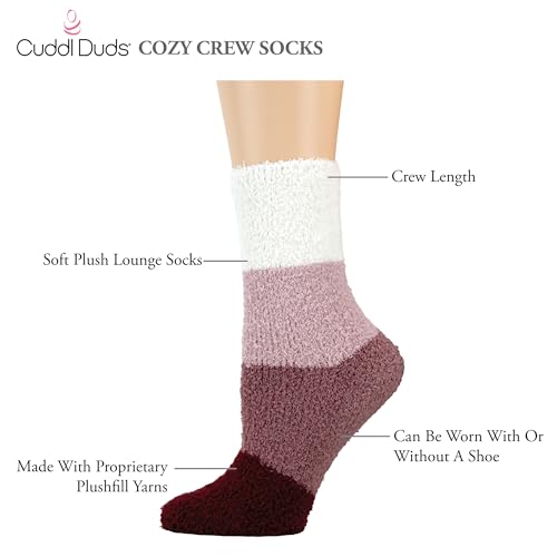 HOT ! Cuddl Duds Women 6 Pair Pack Warm Cozy Fluffy Plush Home Comfortable Sleep Lounge Gift Assorted Pattern Crew Socks