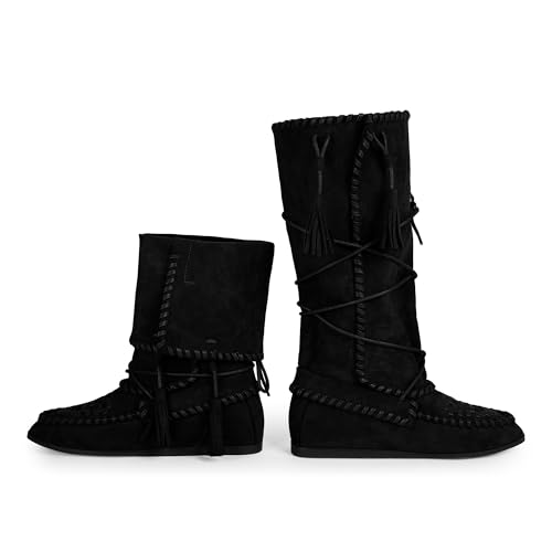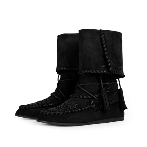 More information about Suede Boots with Woven Details, Tassels and Fold-Over Cuff, Casual Comfortable Slouchy Flat Boots for Fall Winter Daily Wear