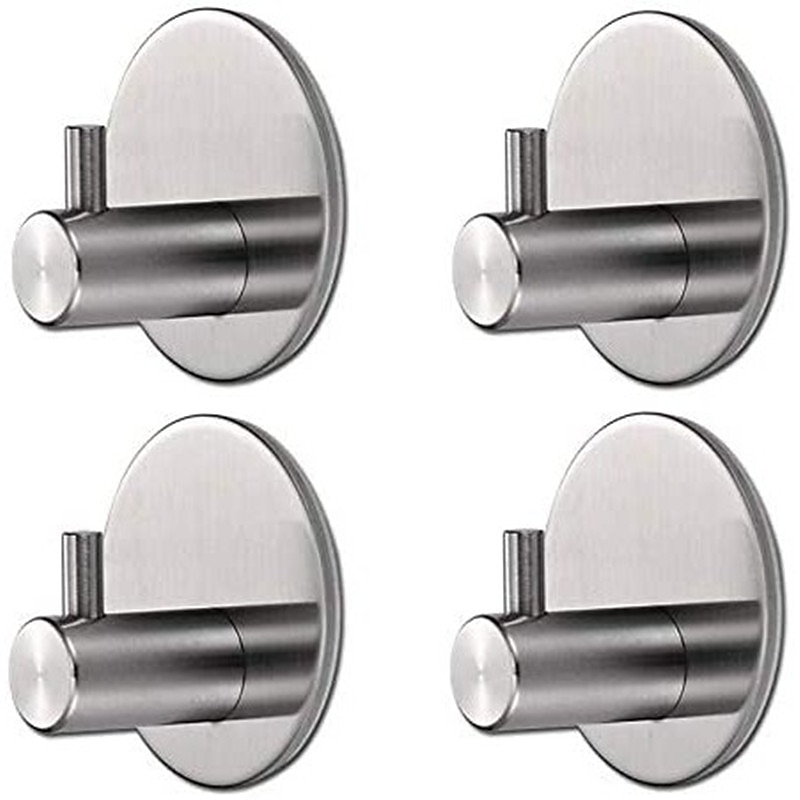 Wall Hooks 4 Pieces Self-adhesive Durable 304 Stainless Steel Wall Hangers Waterproof Rustproof for Kitchen Bathrooms 3M 1