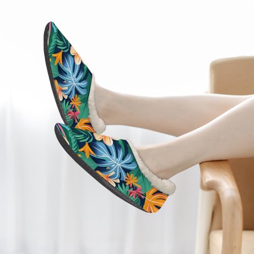 HOT ! Hawaiian Tropical Leaves Slippers for Women Men Cozy Non-slip House Shoes Winter Warm Indoor Slipper