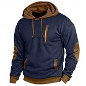 More information about Men's Hoodie Waffle Hoodies Pullover Hoodie Sweatshirt Navy Blue Hooded Color Block Pocket Sports & Outdoor Daily Streetwear Basic Workout Athletic Fall Clothing Apparel Hoodies Sweatshirts
