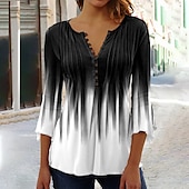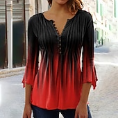 More information about Women's T Shirt Henley Blouse Basic Buttons Print 3/4 Length Sleeve Regular Tops Round Neck Casual Weekend White Pink Red Blue Green