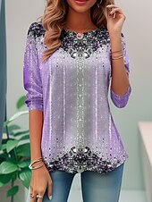 More information about Women's T shirt Crew Neck Long Sleeve Tunic Graphic Daily Basic Round Neck Regular Tops Daily Weekend Print Red Blue Purple Green Light Blue Fall & Winter
