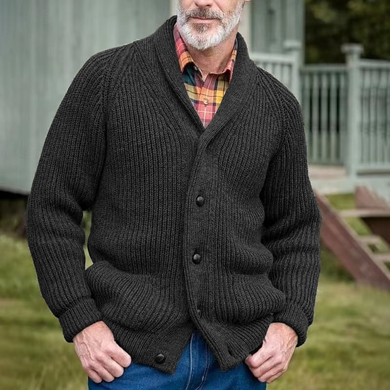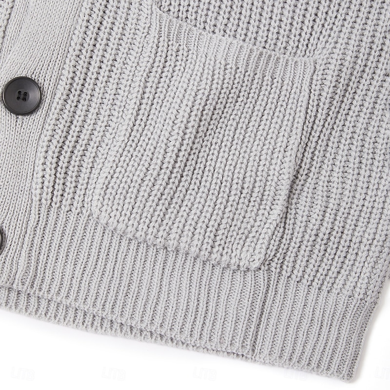 More information about Men's Cardigan Sweater Dress Sweater Chunky Cardigan Cropped Sweater Cable Knit Regular Button Up Plain Lapel Vintage Warm Ups Casual Daily Wear Clothing Apparel Raglan Sleeves Fall Winter Black Green