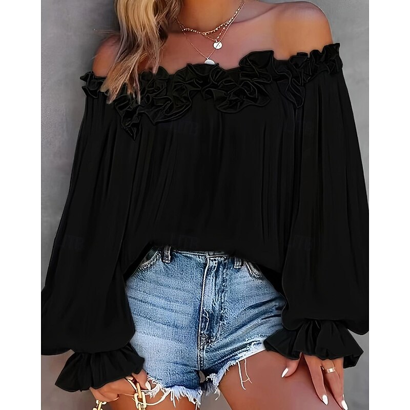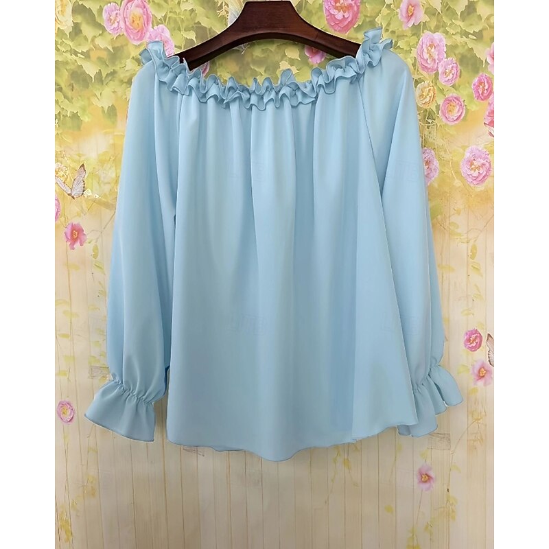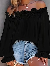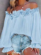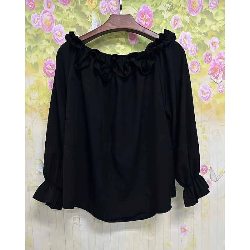 More information about Women's Shirt Blouse Plain Modern Casual Long Sleeve Off Shoulder Regular Tops Daily Holiday Going out Ruffle Backless Black White Pink Blue Summer