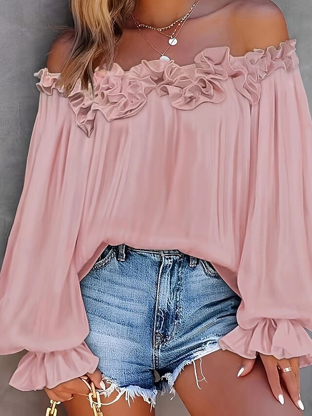 Women's Shirt Blouse Plain Modern Casual Long Sleeve Off Shoulder Regular Tops Daily Holiday Going out Ruffle Backless Black White Pink Blue Summer 15