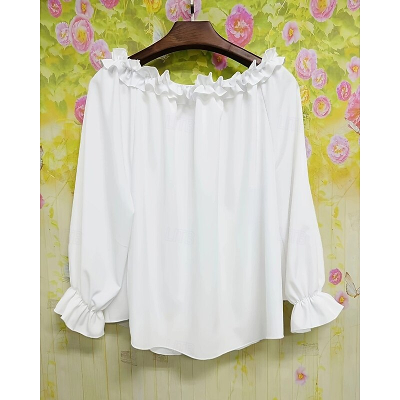 Women's Shirt Blouse Plain Modern Casual Long Sleeve Off Shoulder Regular Tops Daily Holiday Going out Ruffle Backless Black White Pink Blue Summer 16