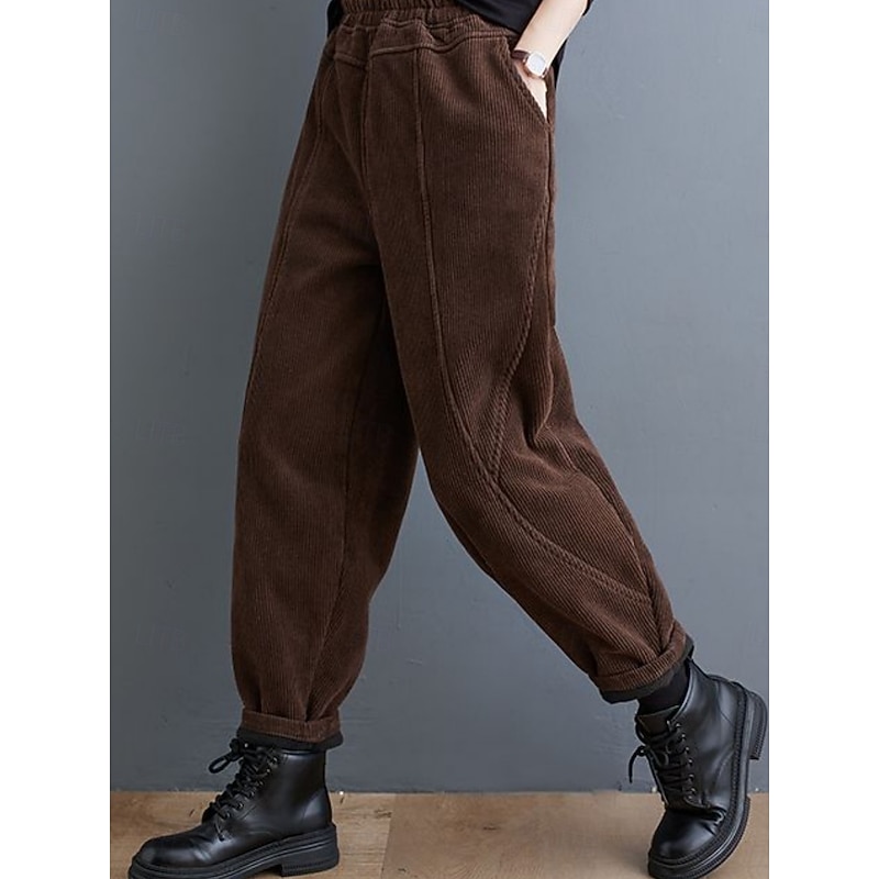 More information about Women's Chinos Vacation Fashion Casual Full Length High Waist Plain Pocket Elastic Waistband Comfy Soft Comfortable Micro-elastic Outdoor Street Black Purple Green Coffee Spring Fall Winter Loose Fit
