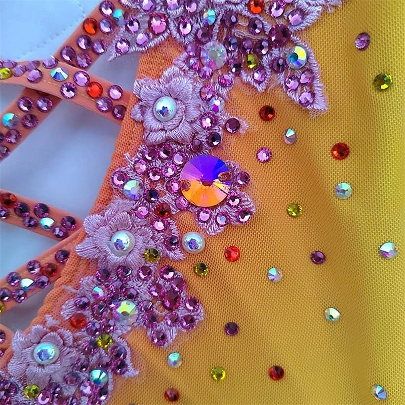 More information about Figure Skating Dress Women's Girls' Ice Skating Dress Yellow High Elasticity Training Competition Skating Wear Classic Crystal / Rhinestone Long Sleeve Ice Skating Figure Skating