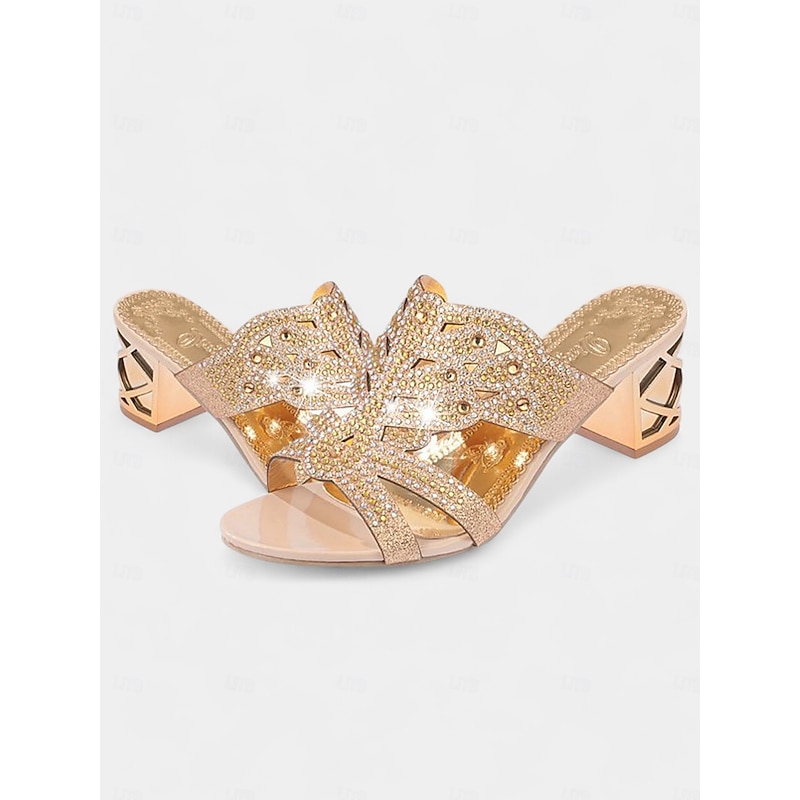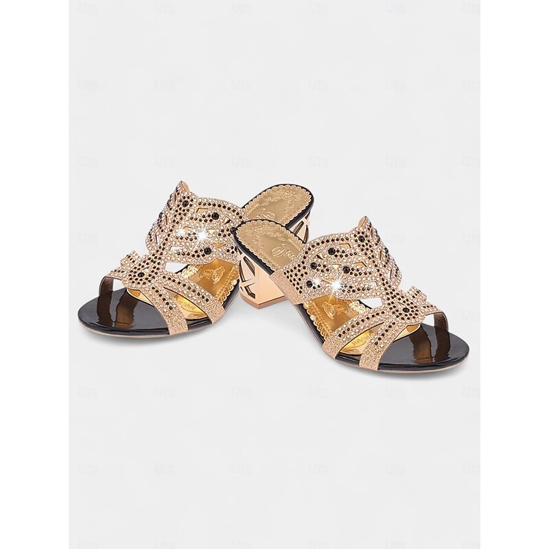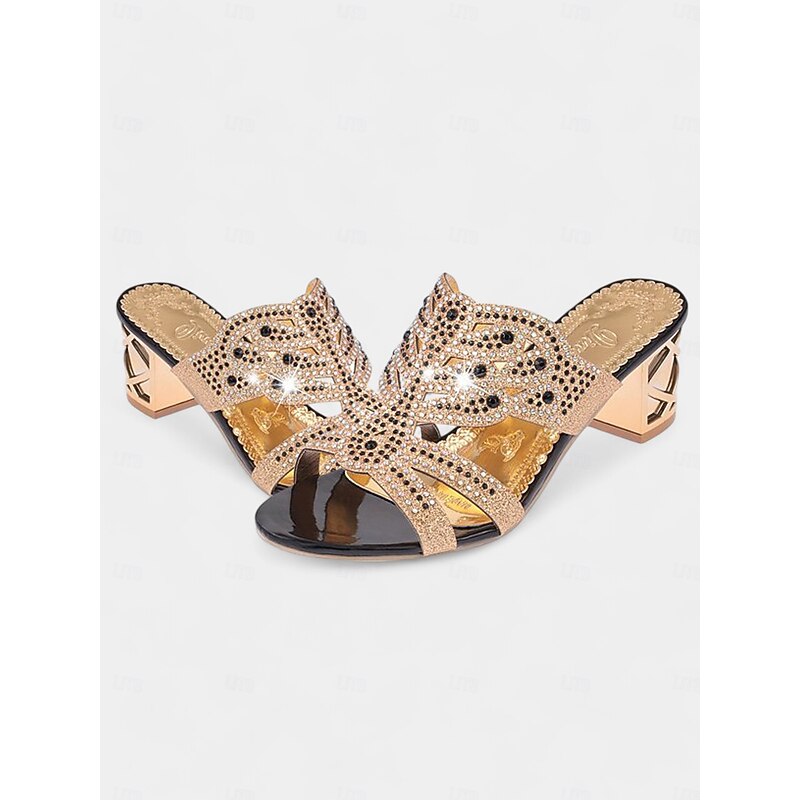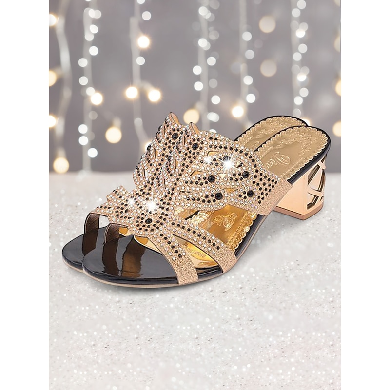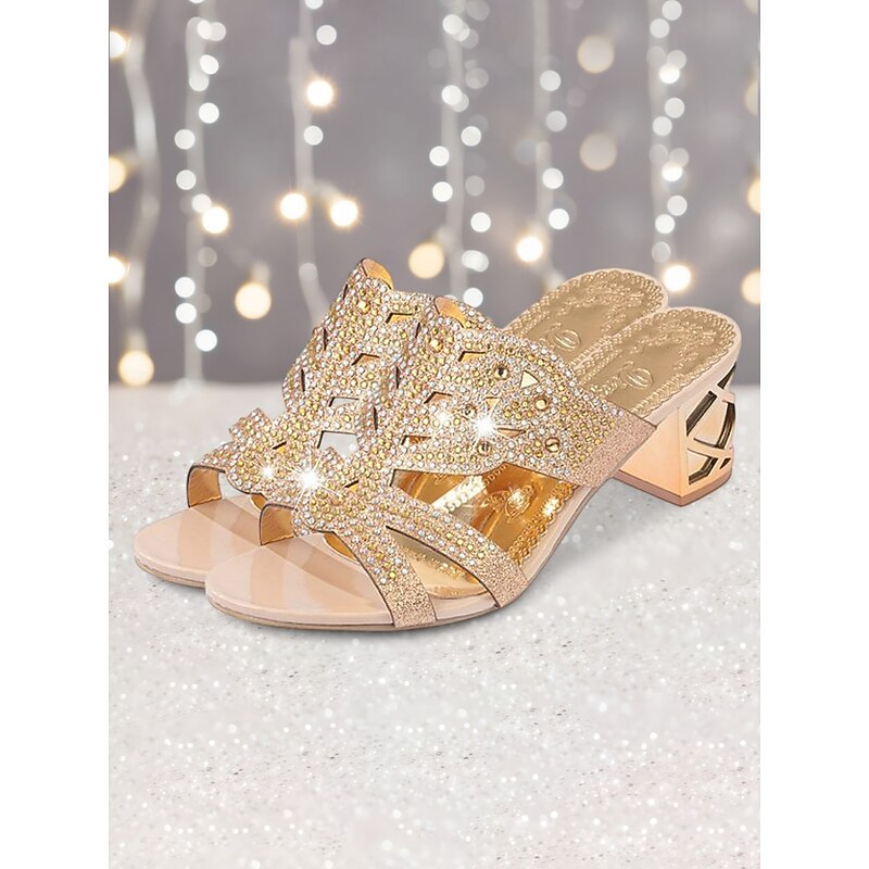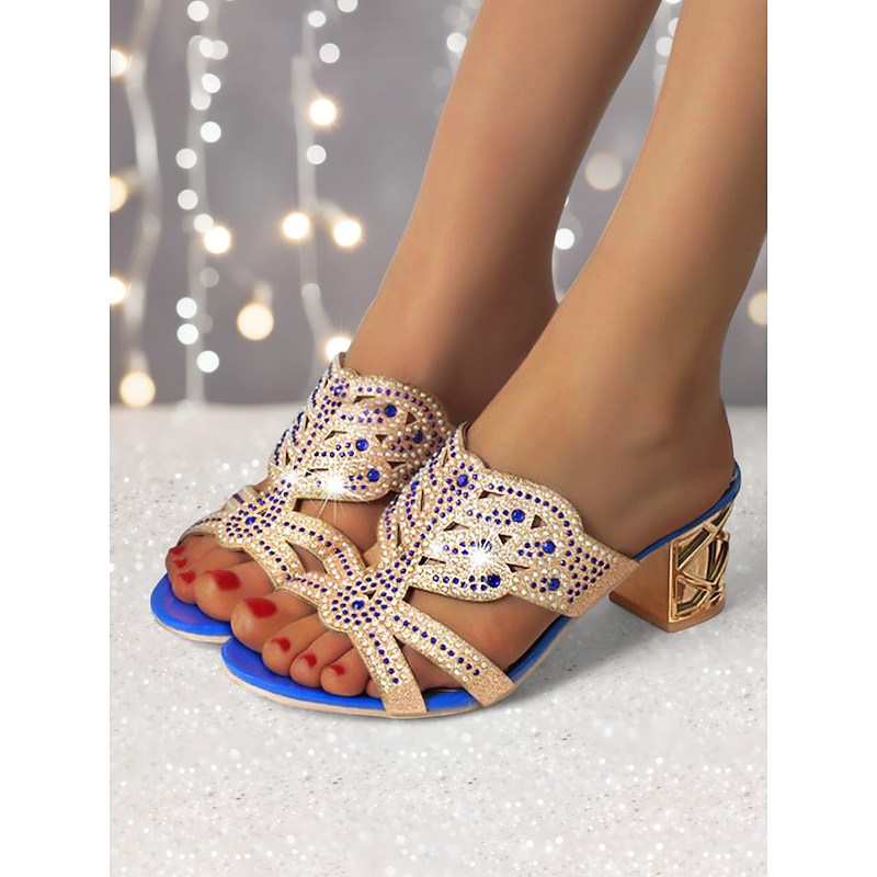 Highlights - Stunning sparkling glitter upper - Luxurious synthetic leather lining - Comfortable chunky heel for added stability - Chic open toe design - Durable rubber outsole for long-lasting wear