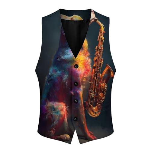 Lablador Retriever Sax Men's Suit Vest Slim Fit Business Dress Party Pattern Waistcoat Vest Top 4