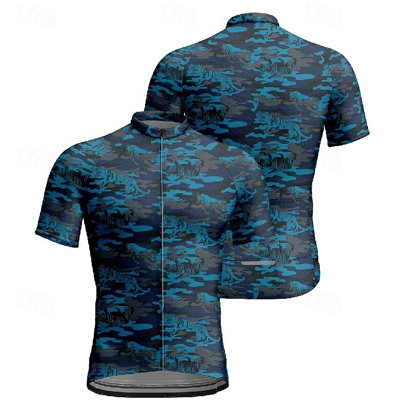 More information about Men's Cycling Jersey Gradient Camo / Camouflage Short Sleeve Bike Tee Tshirt Jersey with 3 Rear Pockets Mountain Bike MTB Quick Dry Anatomic Design Wicking Breathable Sports Black Blue Green Clothing