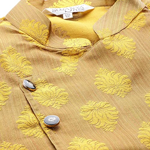 HOT ! Sojanya PLUS (Since 1958) Men's Jacquard Silk Kurta & Off-White Churidar Pyjama Set