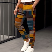 More information about Men's Dress Pants Buttons Pocket 3D Print Plaid Color Block Patchwork Full Length Business Casual Vintage Orange Inelastic