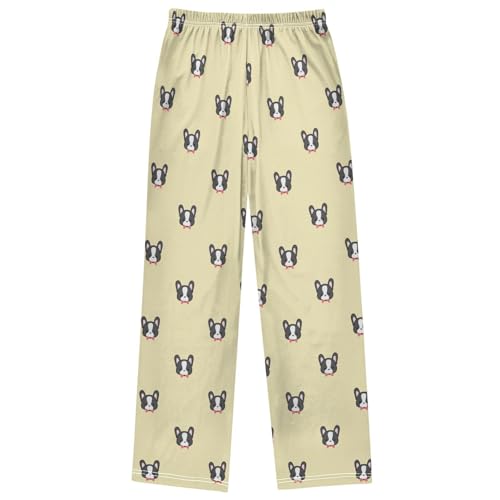 Boy's Pants French Bulldog Head Bow Yellow Jogger Pants Elastic Waist Long Bottoms Trousers with Pockets 6-14 Years 6