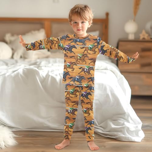 Pajama Sets Long Sleeve Horse Racing Scene Pattern Soft Comfy Sleepwear 2 Piece PJS 3-8T 3
