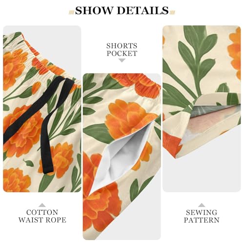 J JOYSAY Marigold Flower Foliage Ivory Pajama Shorts Mens Lounge Sleep Shorts Casual Men Pajama Bottoms 5