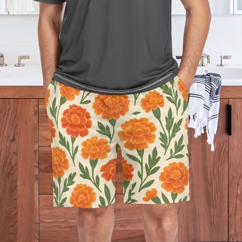 J JOYSAY Marigold Flower Foliage Ivory Pajama Shorts Mens Lounge Sleep Shorts Casual Men Pajama Bottoms 6